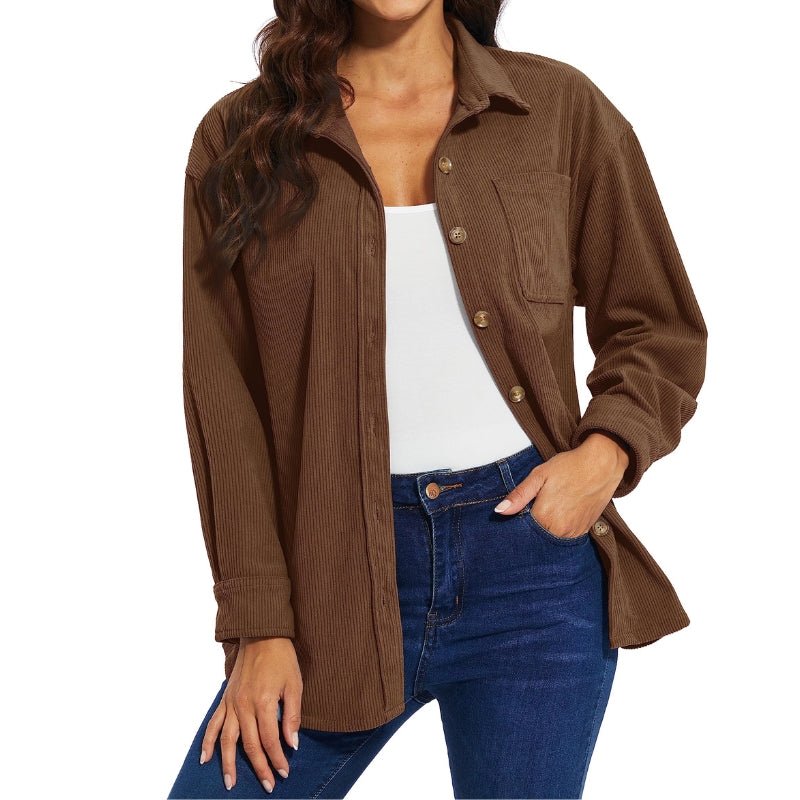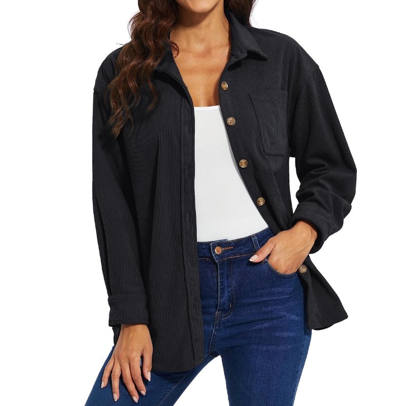 Características: Camisa oversize de terciopelo con manga larga para mujer. Material: poliéster; Bolsillo en el pecho; Tejido ligero, súper cómodo y transpirable; Cuello de solapa; Temporada recomendada: primavera/otoño.