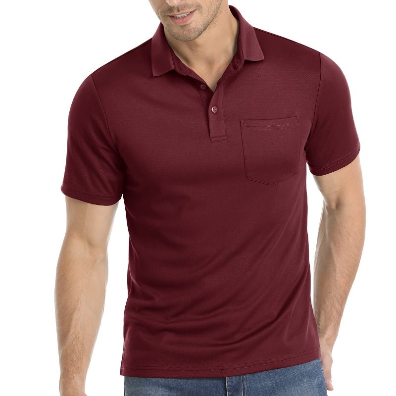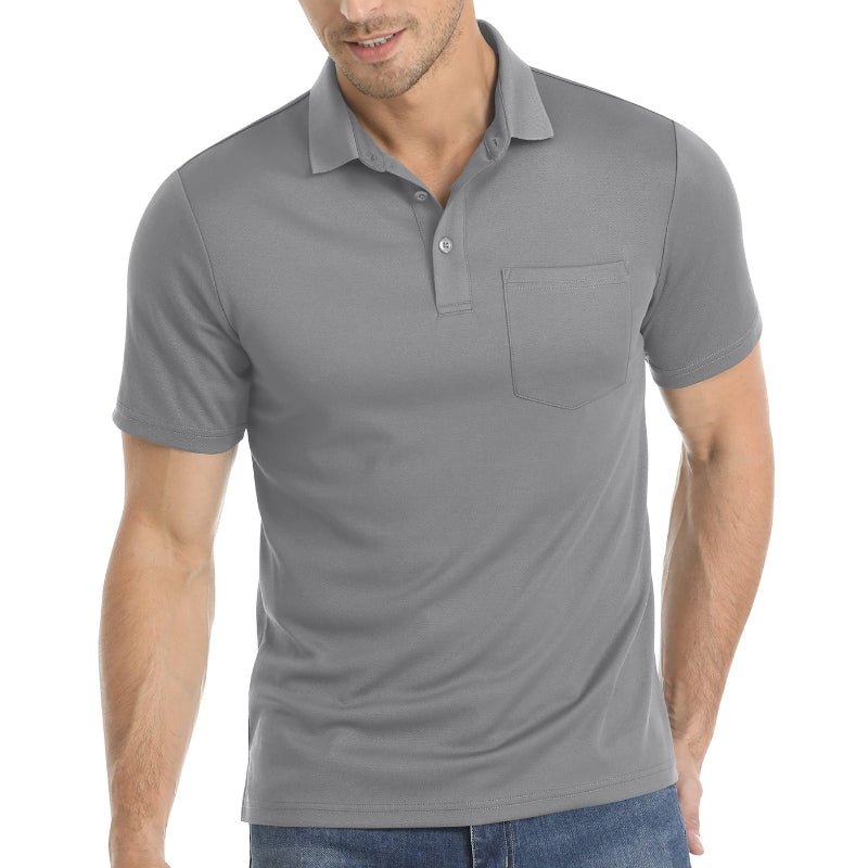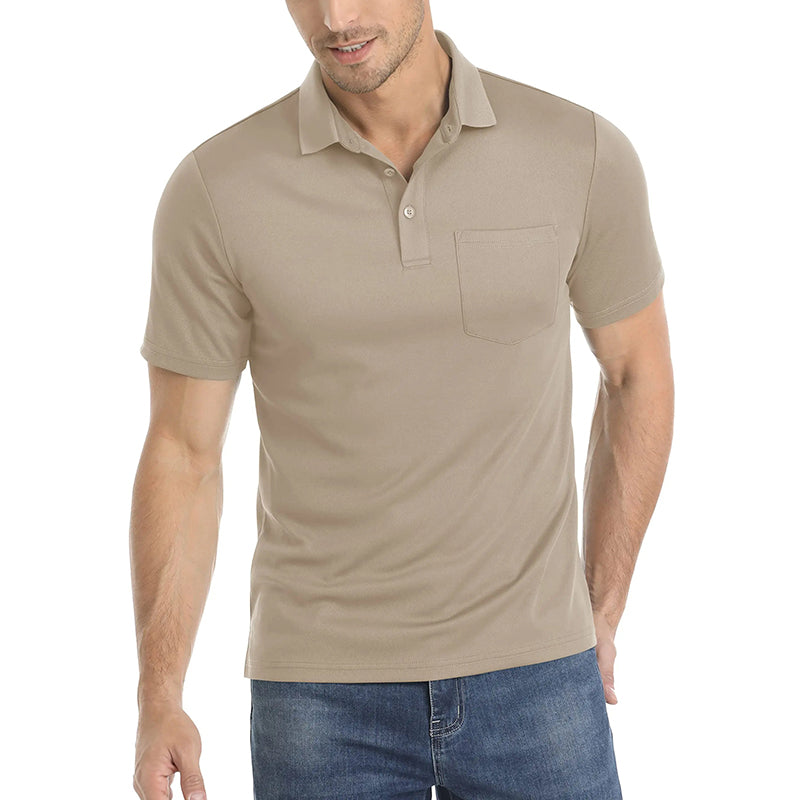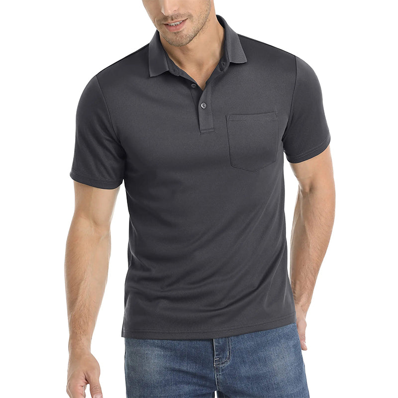 Características:Camiseta de cuello polo de manga corta para hombre.Clásico con tres botones;Tejido de poliéster y elastano;Transpirable y que absorbe la humedad.