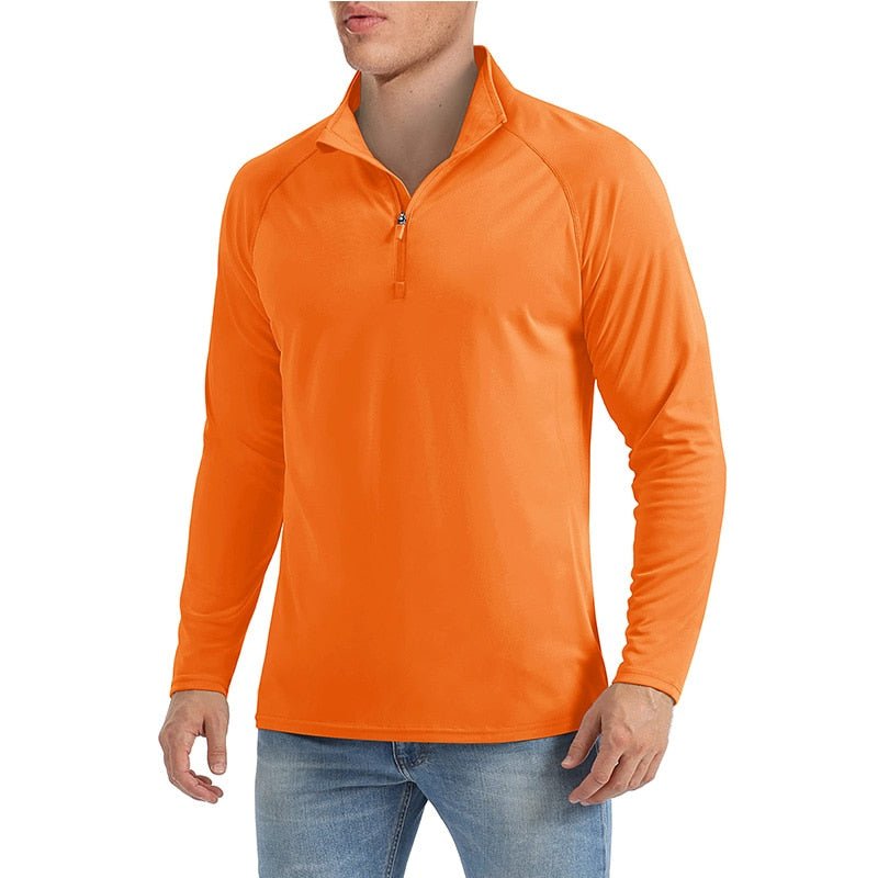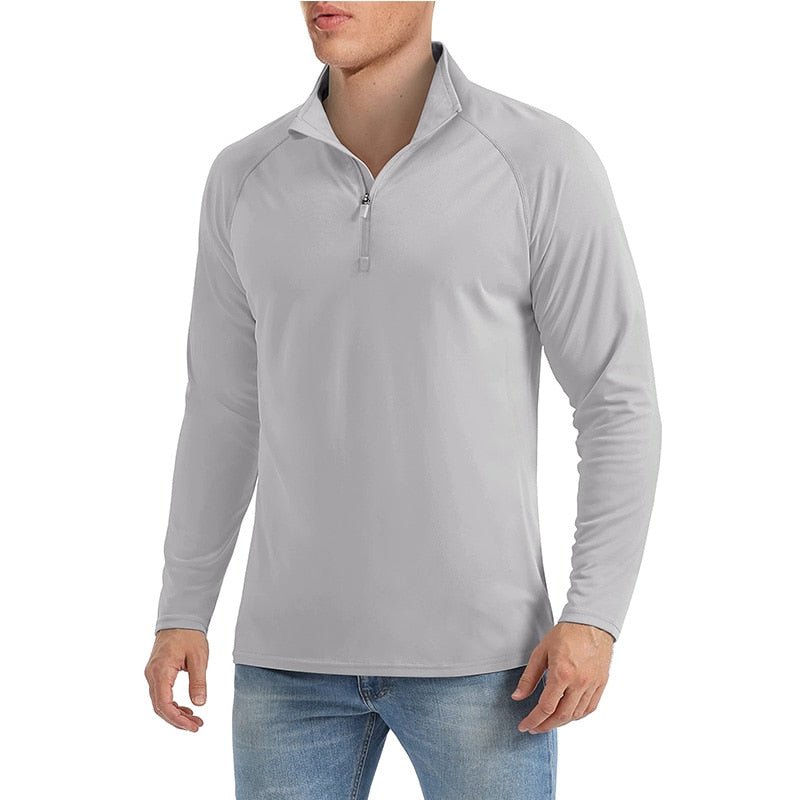 Camiseta de manga larga para hombre con protección UPF 50+. Cuello polo con protección; Apertura de cremallera; Tejido de poliéster y elastano; Tejido duradero y transpirable que absorbe la humedad.