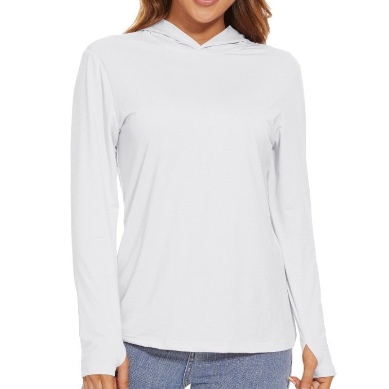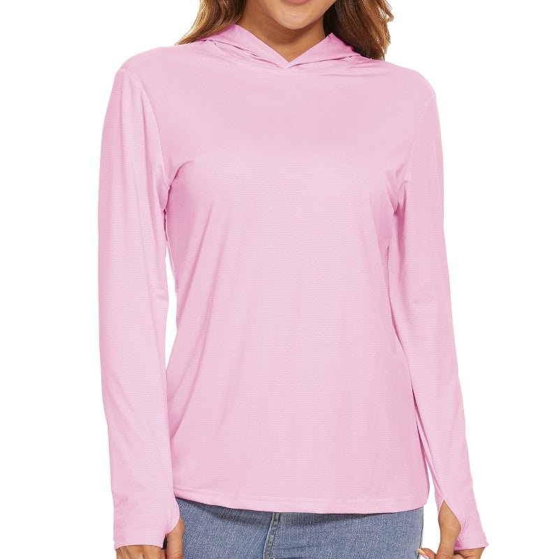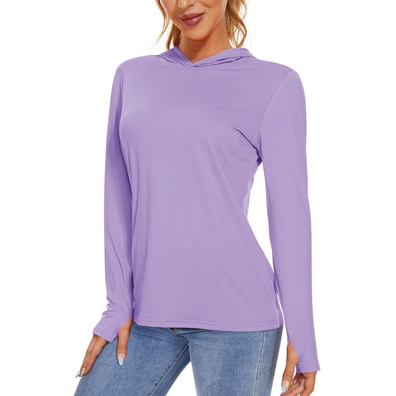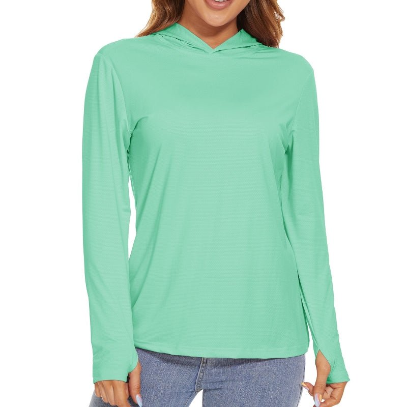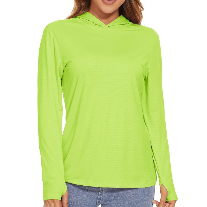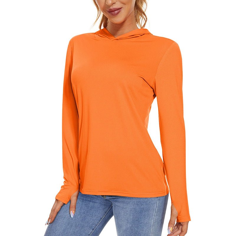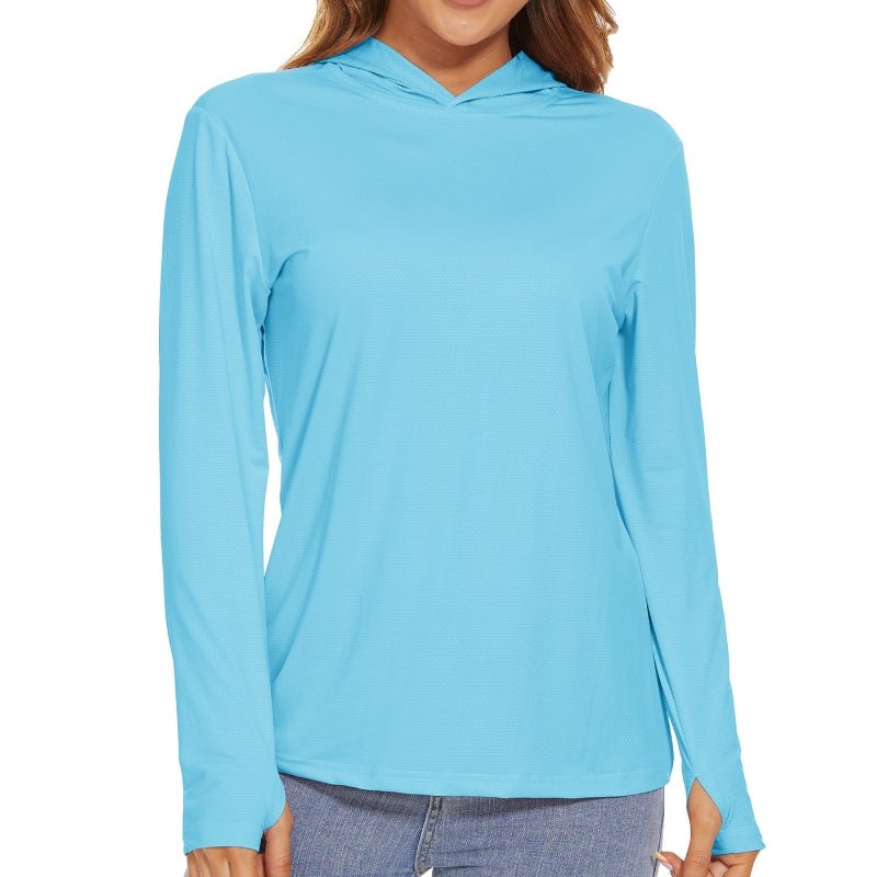 Características:Camiseta Manga Larga Mujer, Con Capucha y Protección Solar.Ligero, transpirable, de secado rápido y que absorbe la humedad;Tejido: poliéster.