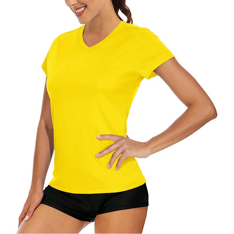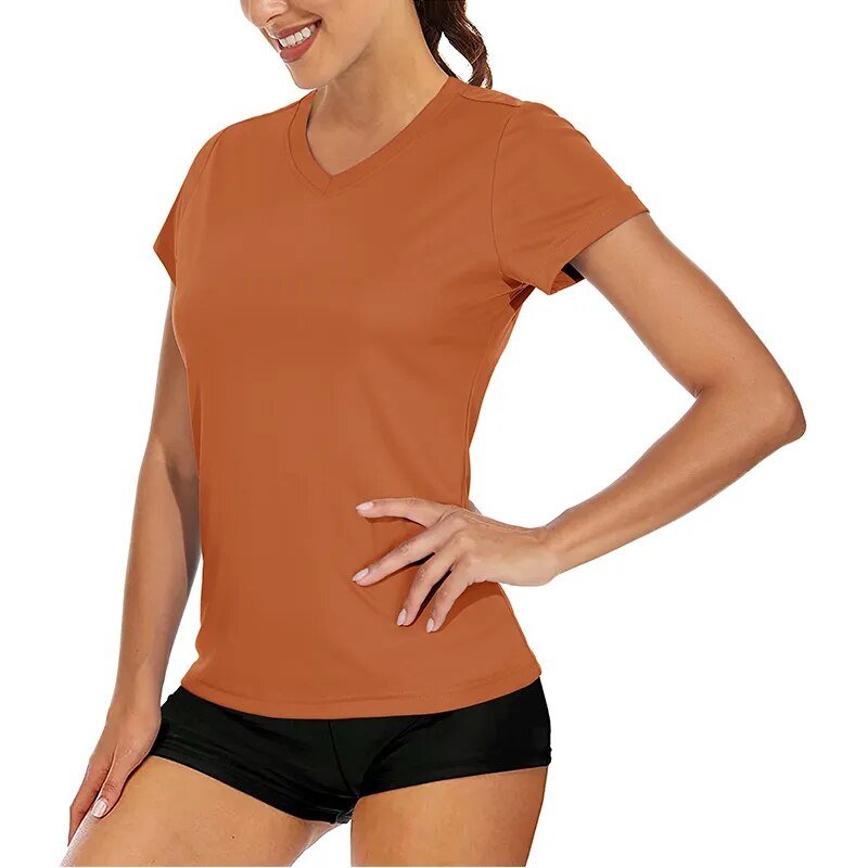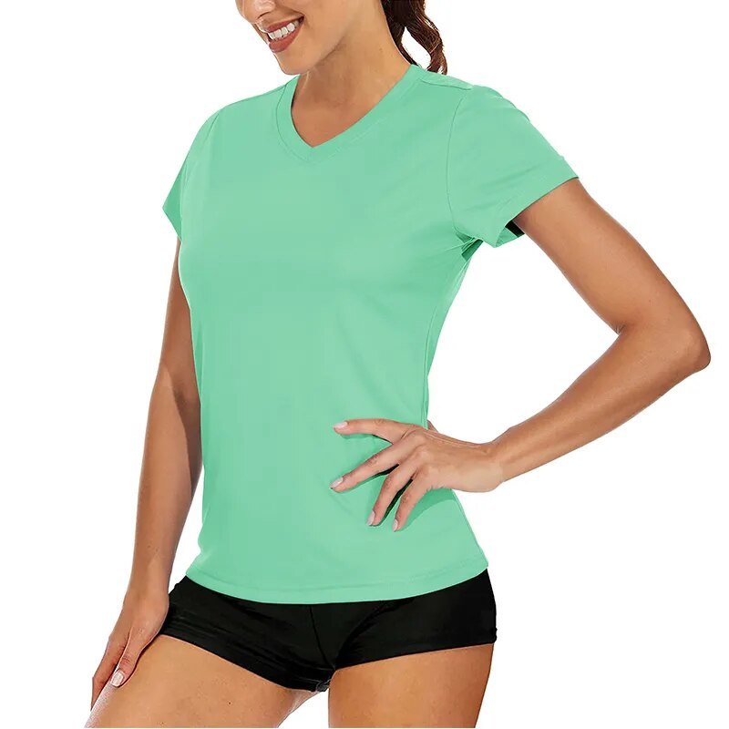 Características:Camiseta de manga corta para mujer con protección solar UPF 50+.Ligero, de secado rápido, que absorbe la humedad, transpirable;Tejido de poliéster.