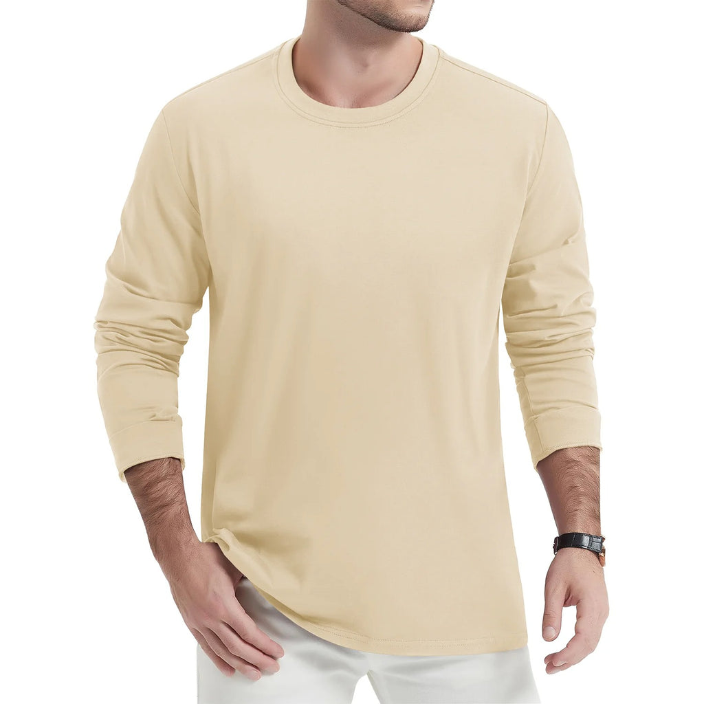 Características: Camiseta de manga larga para hombre. Tejido de algodón; La tela funcional absorbe la humedad de la piel y la mantiene fresca y seca; Ligero, transpirable, de secado rápido, que absorbe la humedad.