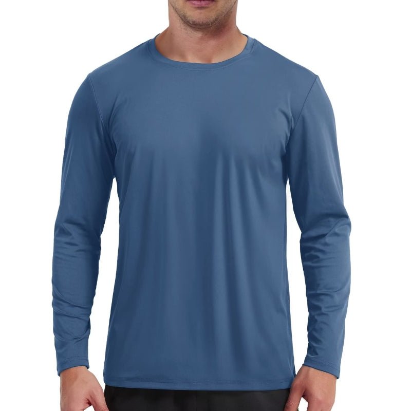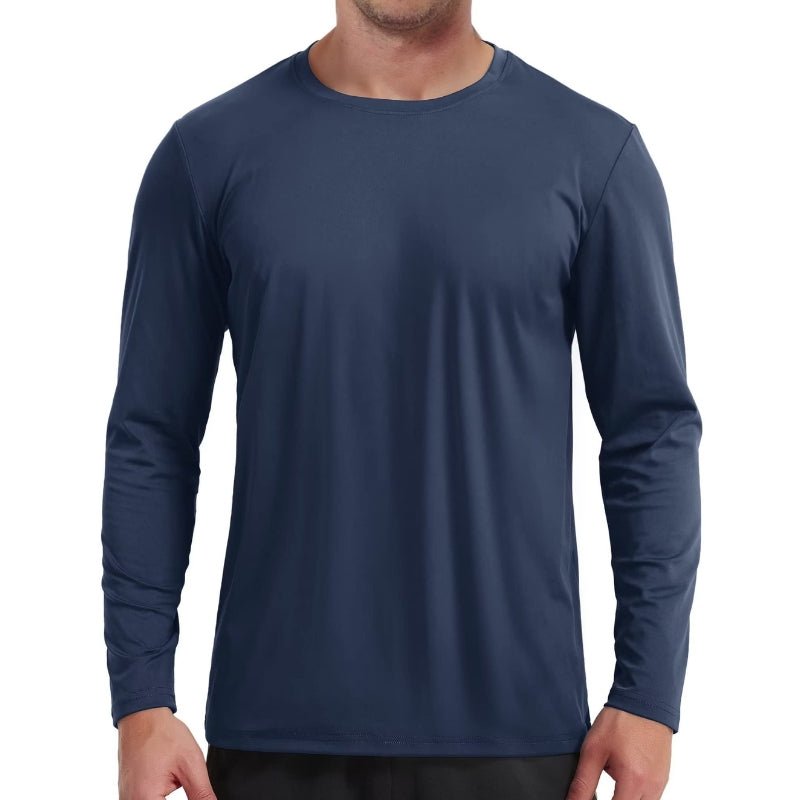 Características:Camiseta de manga larga para hombre con protección UPF 50+.Tejido 89% poliéster y 11% elastano;Ligero, transpirable, absorbe la humedad.