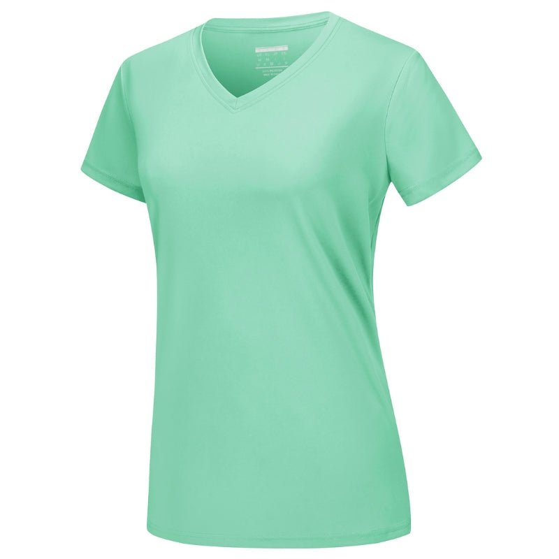 Características:Camiseta de manga corta para mujer con protección solar UPF50+.Ligero, de secado rápido, que absorbe la humedad, transpirable;Tejido de poliéster.