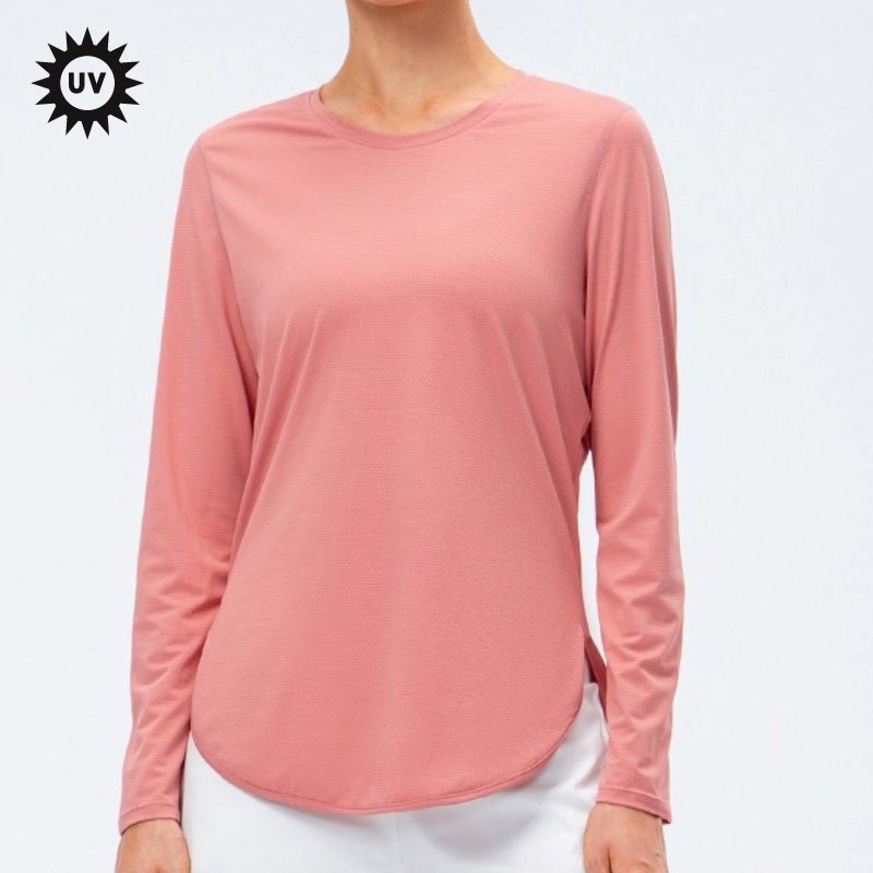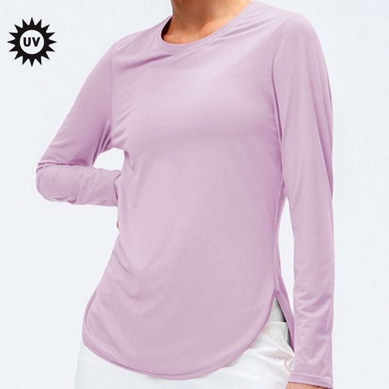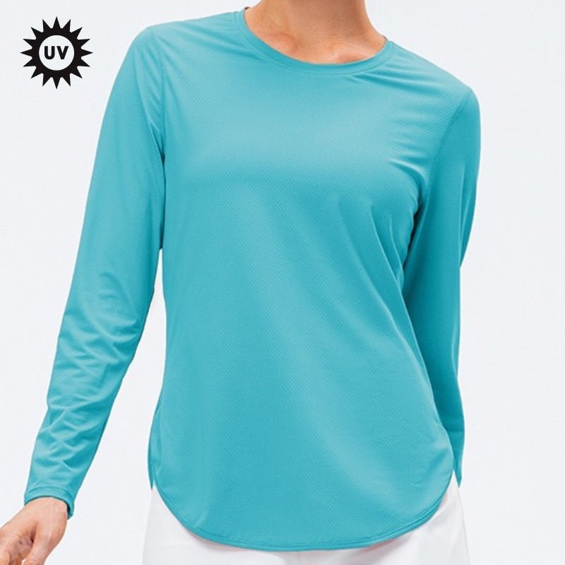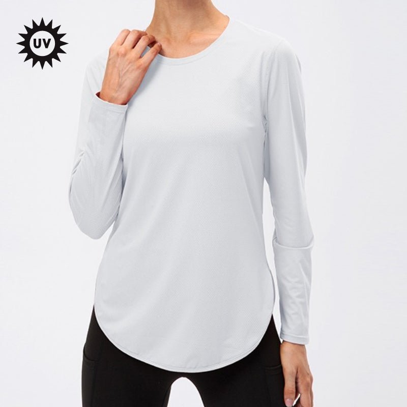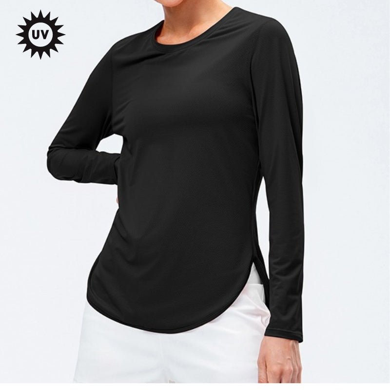 Características: Camiseta de manga larga para mujer con protección UVA+50. Ligero, de secado rápido, que absorbe la humedad, transpirable; Modelo alargado con apertura en los laterales.