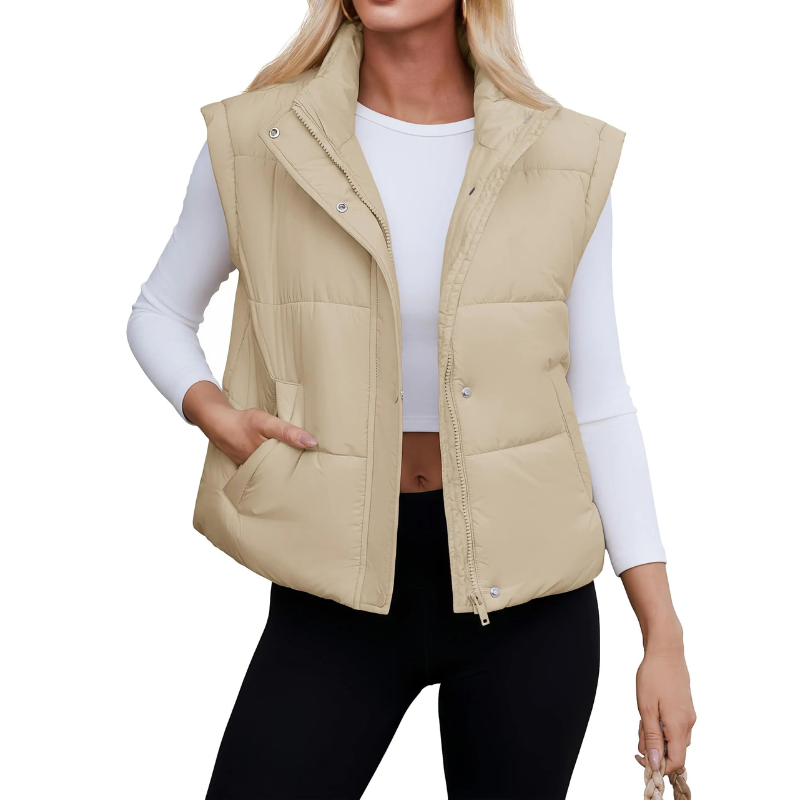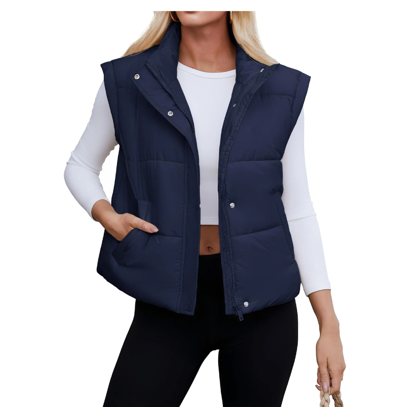 Características: Chaleco acolchado para mujer, transpirable, suave y cómodo. Material exterior: poliéster. Relleno: 85 % plumón de ganso (150 g). Cierre de cremallera. Dos bolsillos laterales. Resistente al agua y al viento.