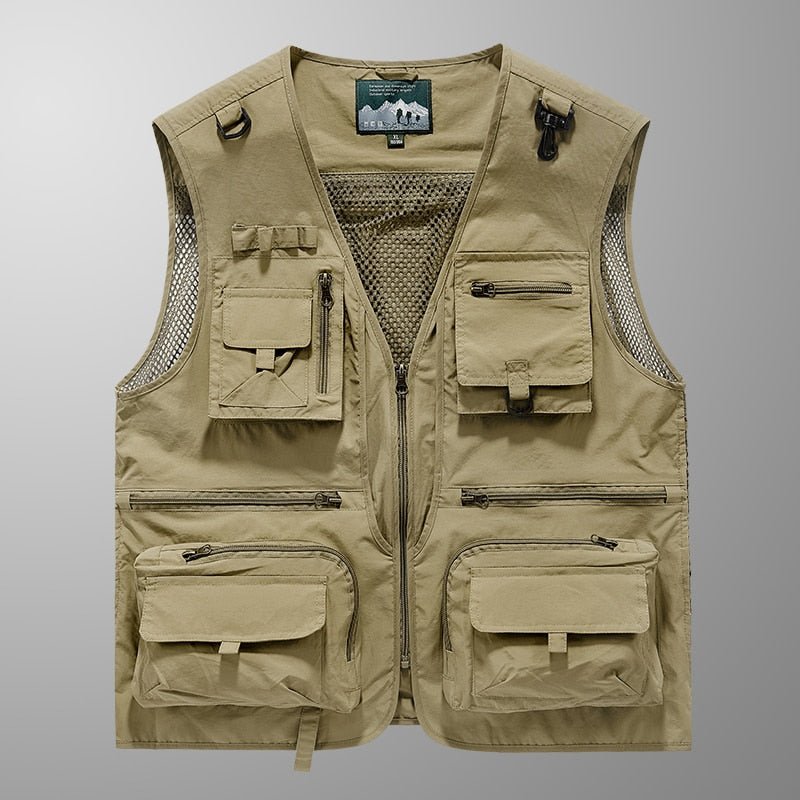 Características: Chaleco para actividades deportivas; Tejido: nailon; Tejido ligero, de secado rápido y resistente al agua; Multibolsillos, hay 14 bolsillos en total; Respaldo desmontable; Alta calidad y durabilidad.