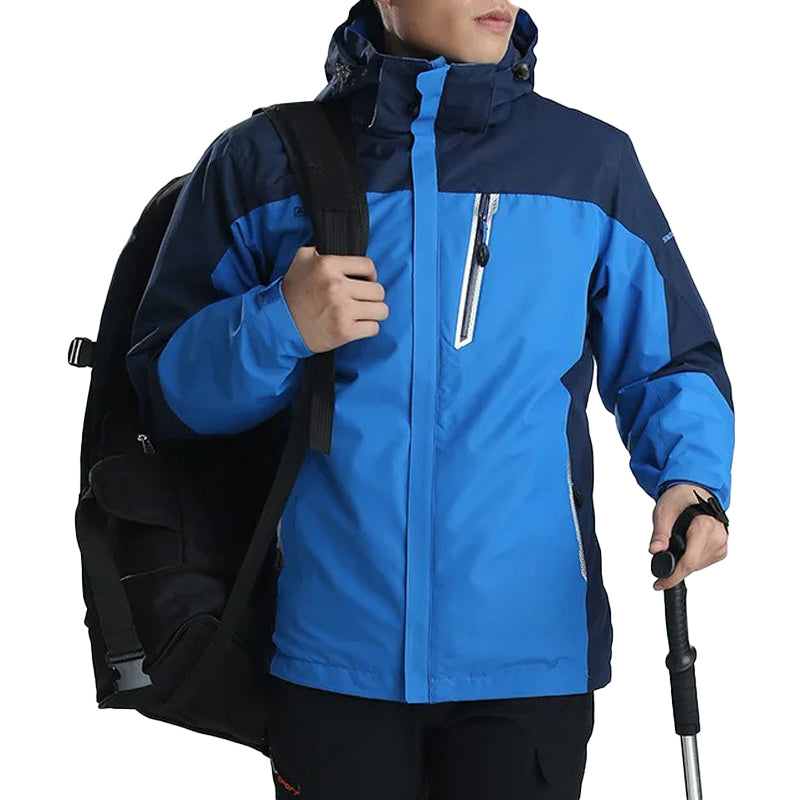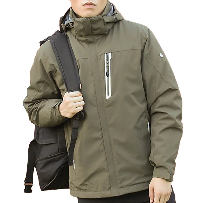 Chaqueta 3 en 1 para hombre, ideal para aventuras al aire libre. Versátil, se puede usar sola o en conjunto, adaptándose a diferentes temperaturas.