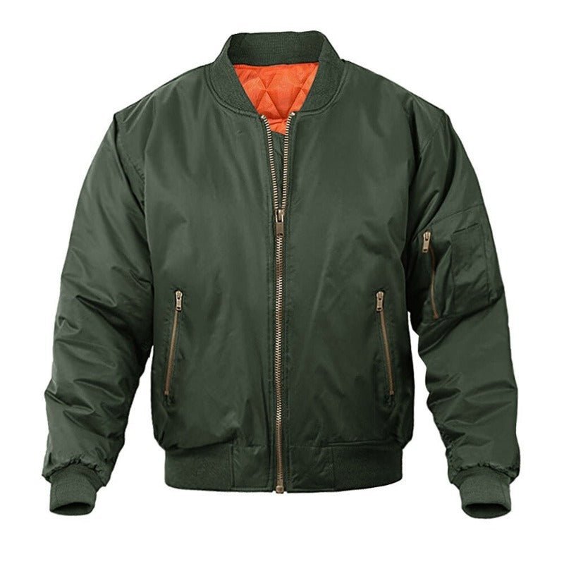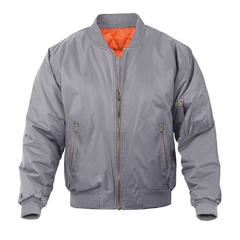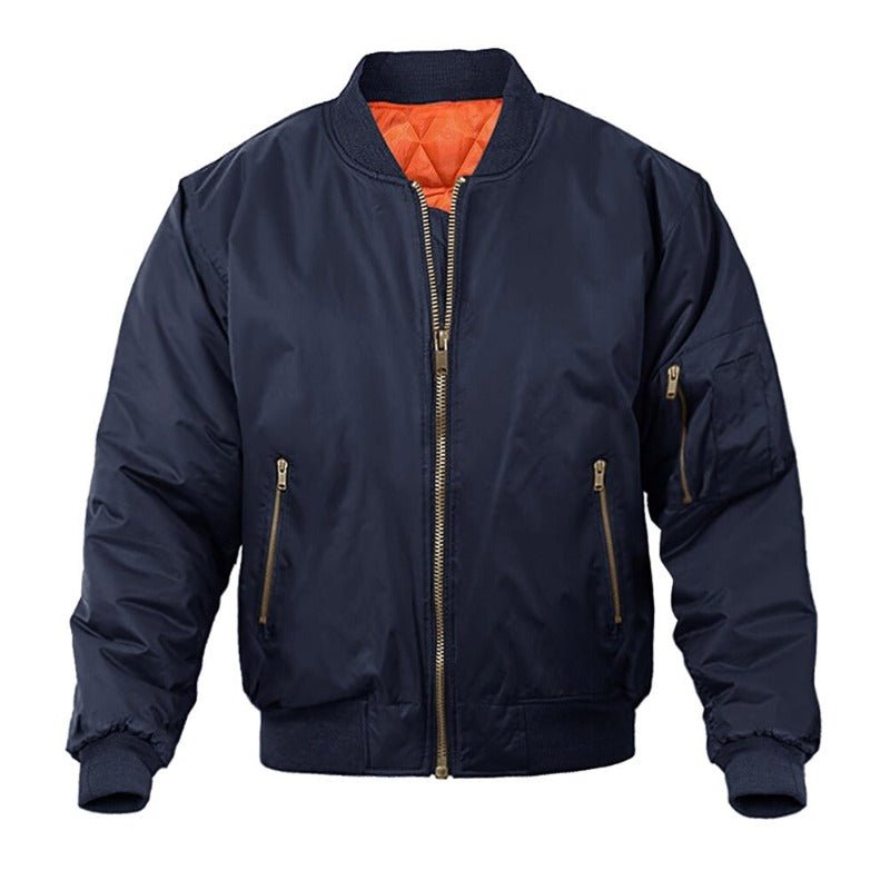 Características: Chaqueta acolchada forrada para hombre; Tejido de algodón y poliéster; Forro de color; Bolsillos con cremallera; Resistente al viento; Cuello, puños y cintura acanalados.
