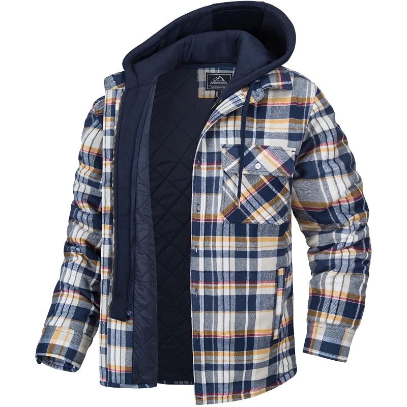 Chaqueta forrada para hombre con capucha desmontable en estilo camisa.