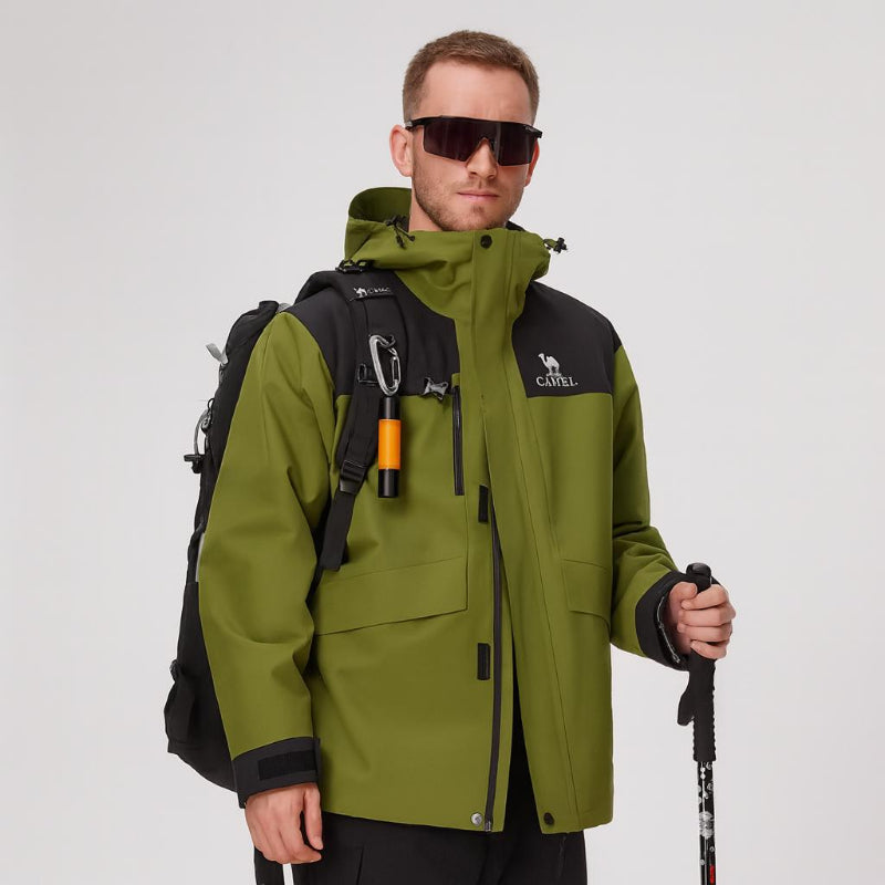 Chaqueta 3 en 1 para hombre diseñada para aventuras al aire libre en diversos climas.