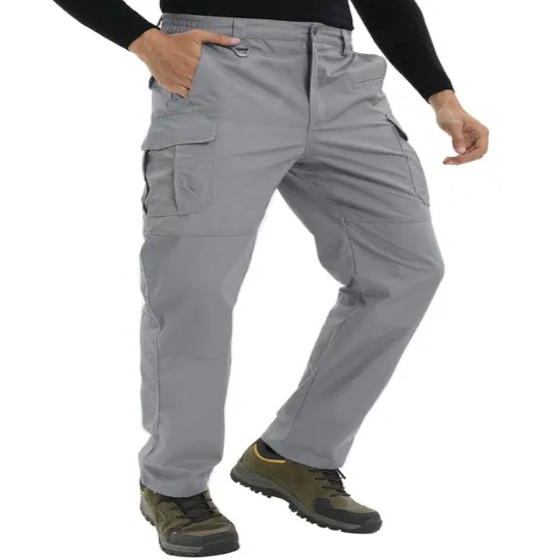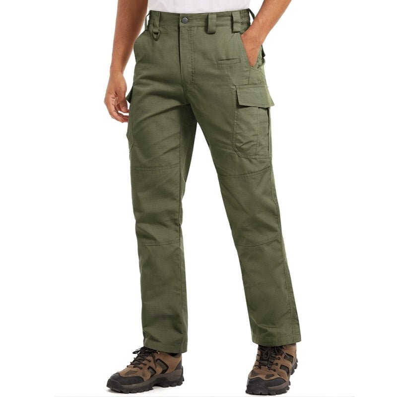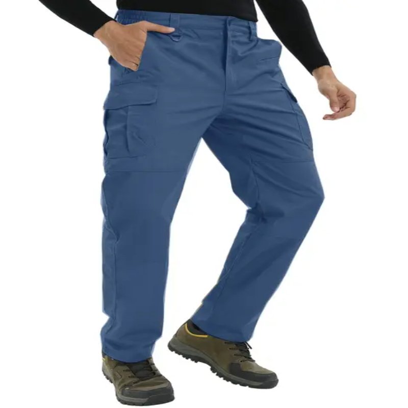 Características: Pantalón de hombre con elástico en los laterales de la cintura; Material: Ripstop; Tejido: 65% poliéster y 35% algodón; Múltiples bolsillos; Comodidad, ligereza y flexibilidad para los movimientos.