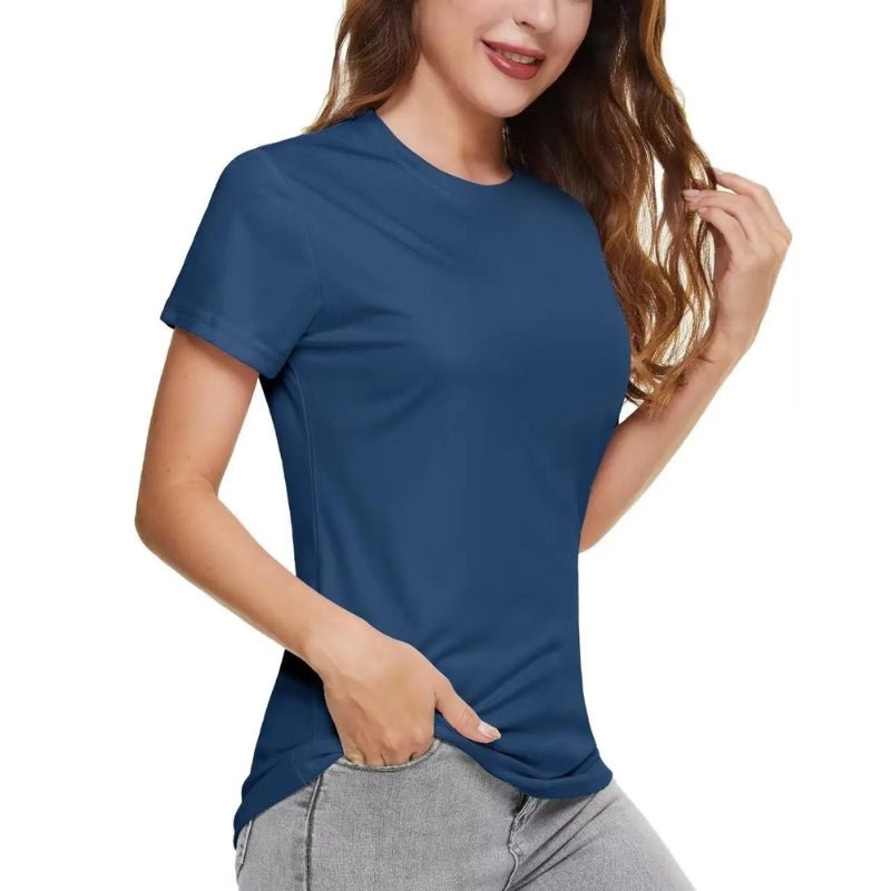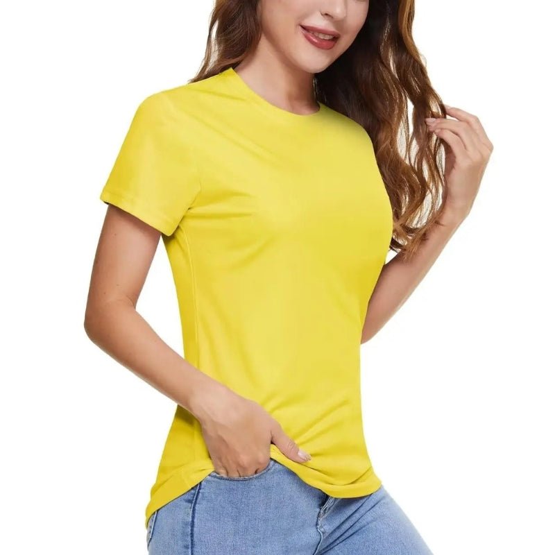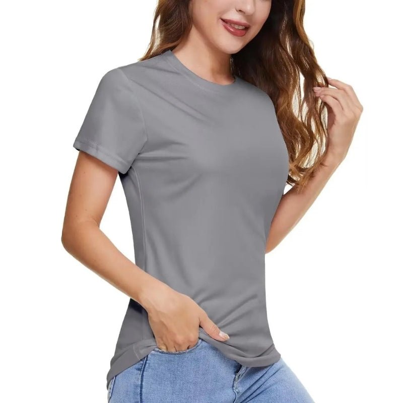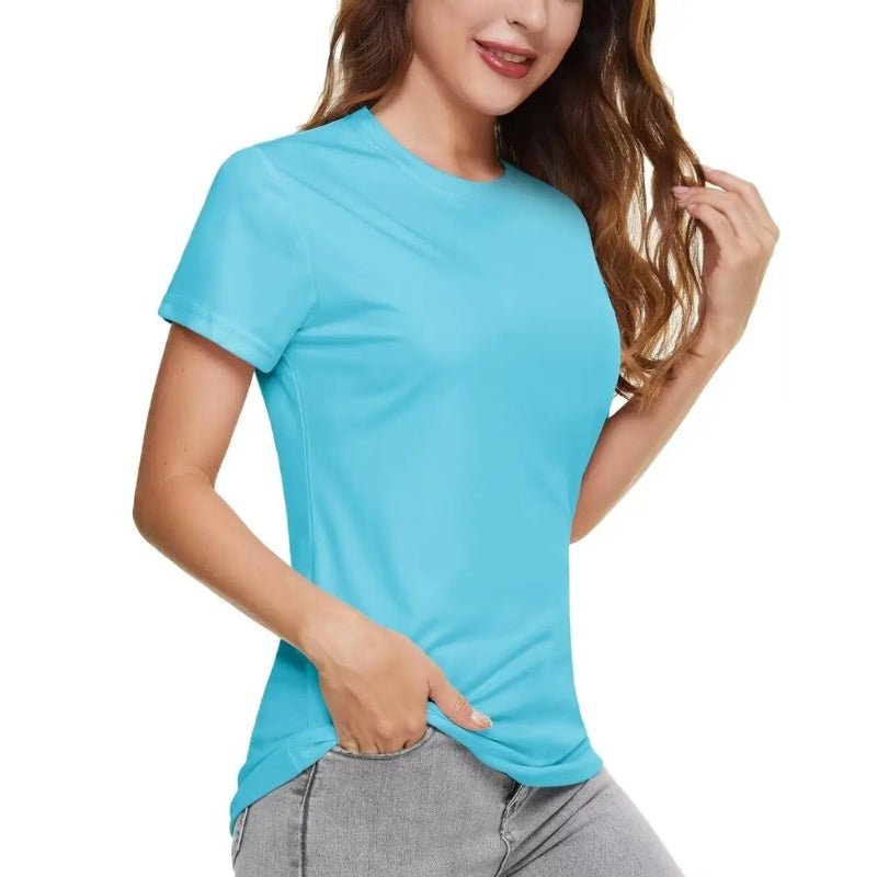 Características: Camiseta de manga corta para mujer con protección solar UPF 50+. Suave, transpirable y duradero; Ligero, de secado rápido, que absorbe la humedad, transpirable; Tejido de poliéster.