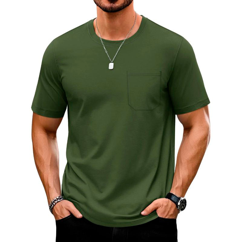Polera deportiva para hombre con bolsillo en el pecho y protección solar UPF 50+.