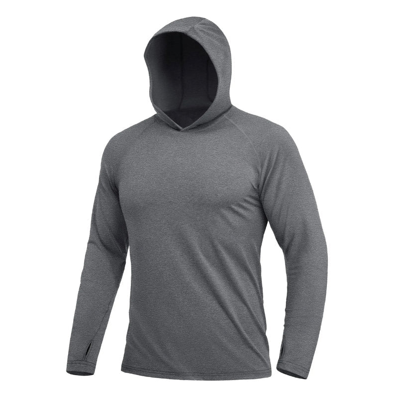 Características: Polera de manga larga con capucha para hombre con protección UV UPV 50+. Tejido 88% poliéster y 12% elastano Con apertura para el pulgar; Ligero, suave, transpirable y absorbe la humedad.