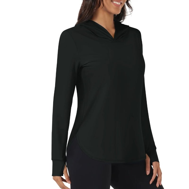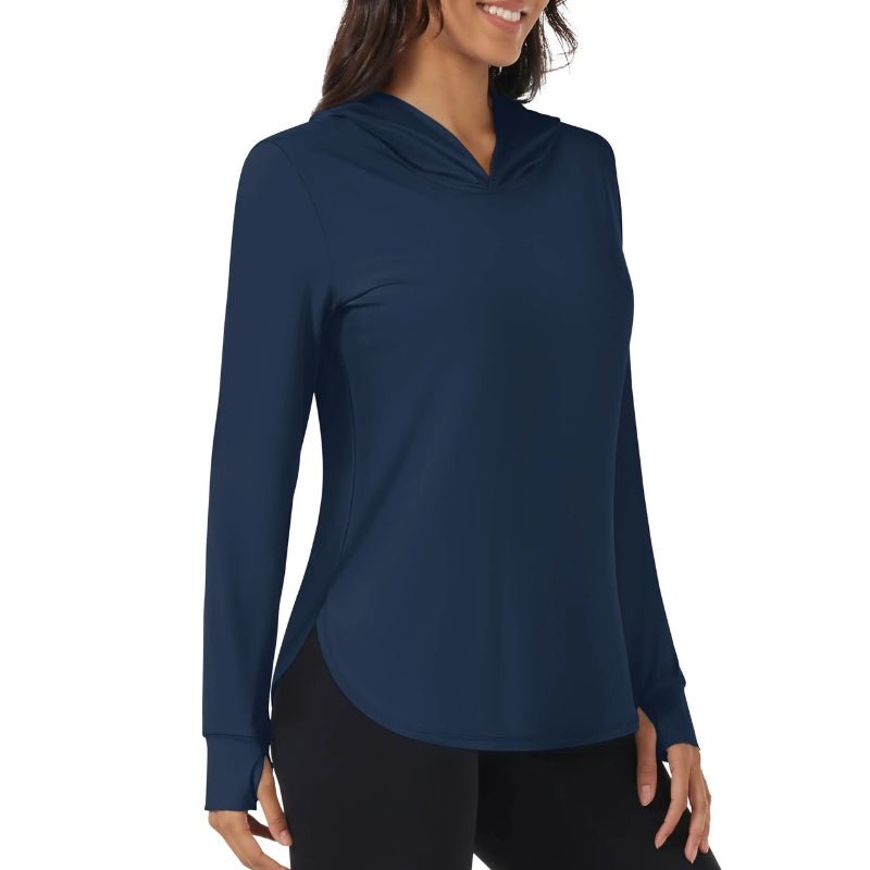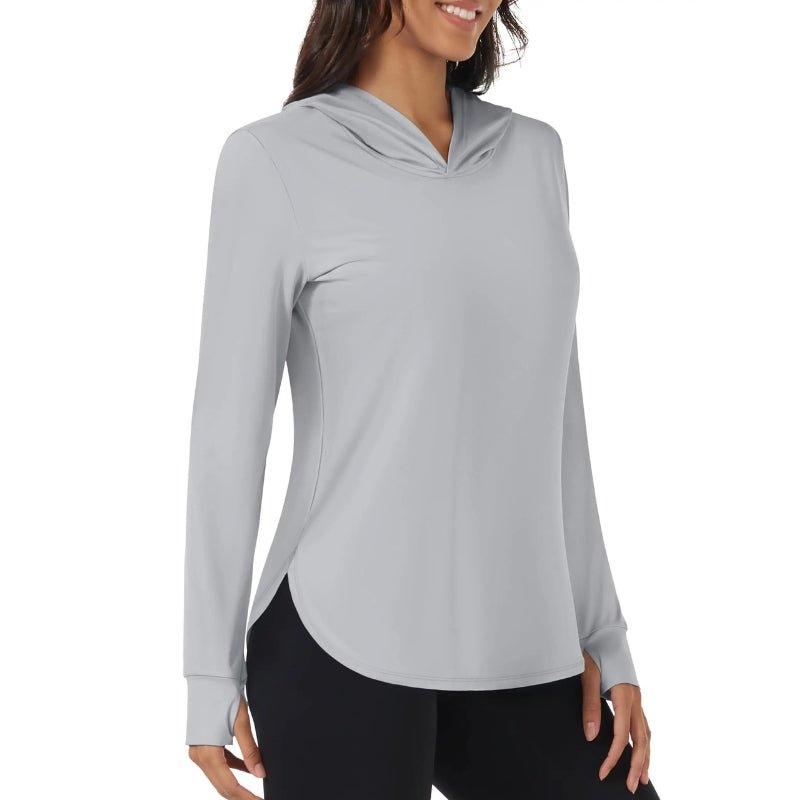 Polera de mujer de manga larga, con capucha y protección UPF 80+.