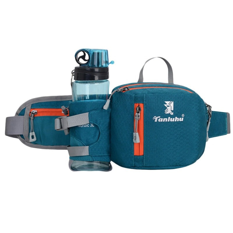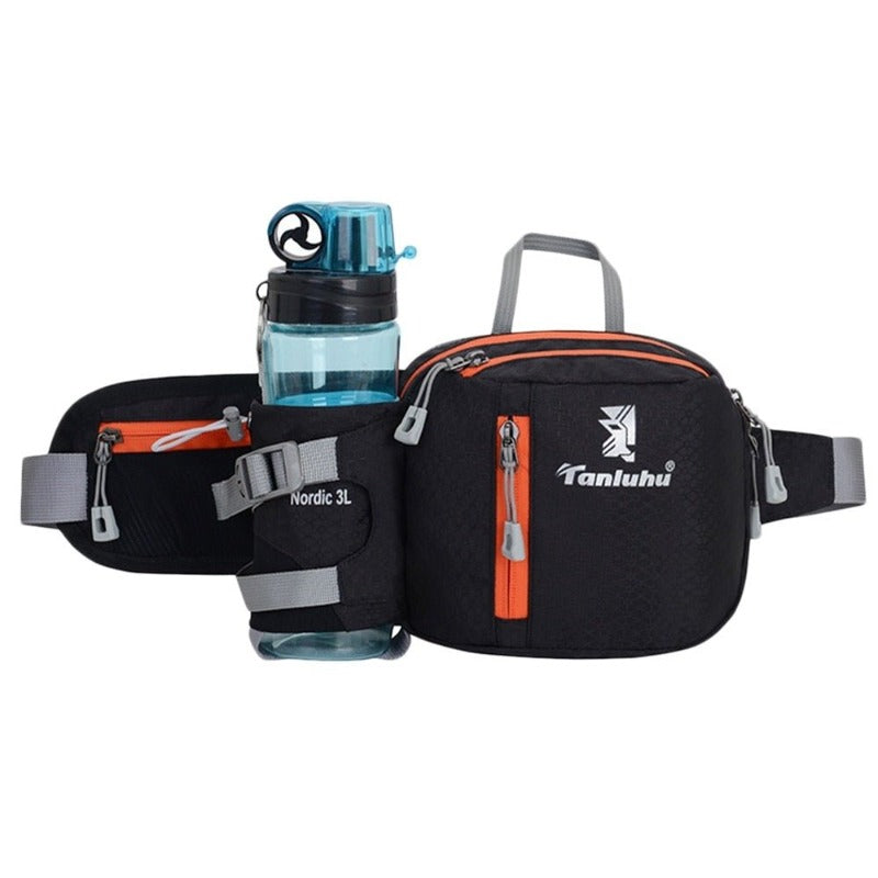 Presupuesto: Riñonera deportiva con bolsillo para botella de agua, impermeable y duradera. Material: nailon Tamaño: 45x11x16cm Peso: 210 gramos Circunferencia de cintura: Ajuste 65-115cm